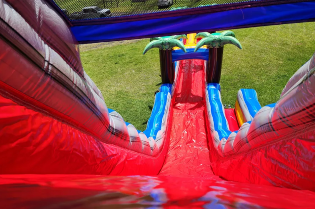 Make a splash at your next party with our 25ft Rip Curl Waterslide rental, featuring an exciting slip-and-slide attachment for double the fun. This vibrant, wave-themed inflatable delivers a fast, refreshing ride and an extended sliding lane that keeps kids and guests entertained for hours. Perfect for birthdays, school events, church gatherings, and summer backyard parties, the Rip Curl Waterslide is a crowd favorite that adds big-time thrills while helping everyone stay cool. Key features: - 25-foot tall, wave-inspired Rip Curl design - Built-in slip-and-slide attachment for longer rides and more play - Great for outdoor summer events and large groups - Bright, eye-catching colors that look great in photos - Ideal for kids, teens, and family-friendly events What’s included: - 25ft Rip Curl Waterslide inflatable with slip-and-slide attachment - Setup and takedown (as provided with your rental) - Safety instructions for proper use Requirements: - Water source and hose connection required - Adequate space for safe setup - Adult supervision recommended at all times Reserve the 25ft Rip Curl Waterslide with Slip and Slide today and turn your event into the ultimate summer water party.